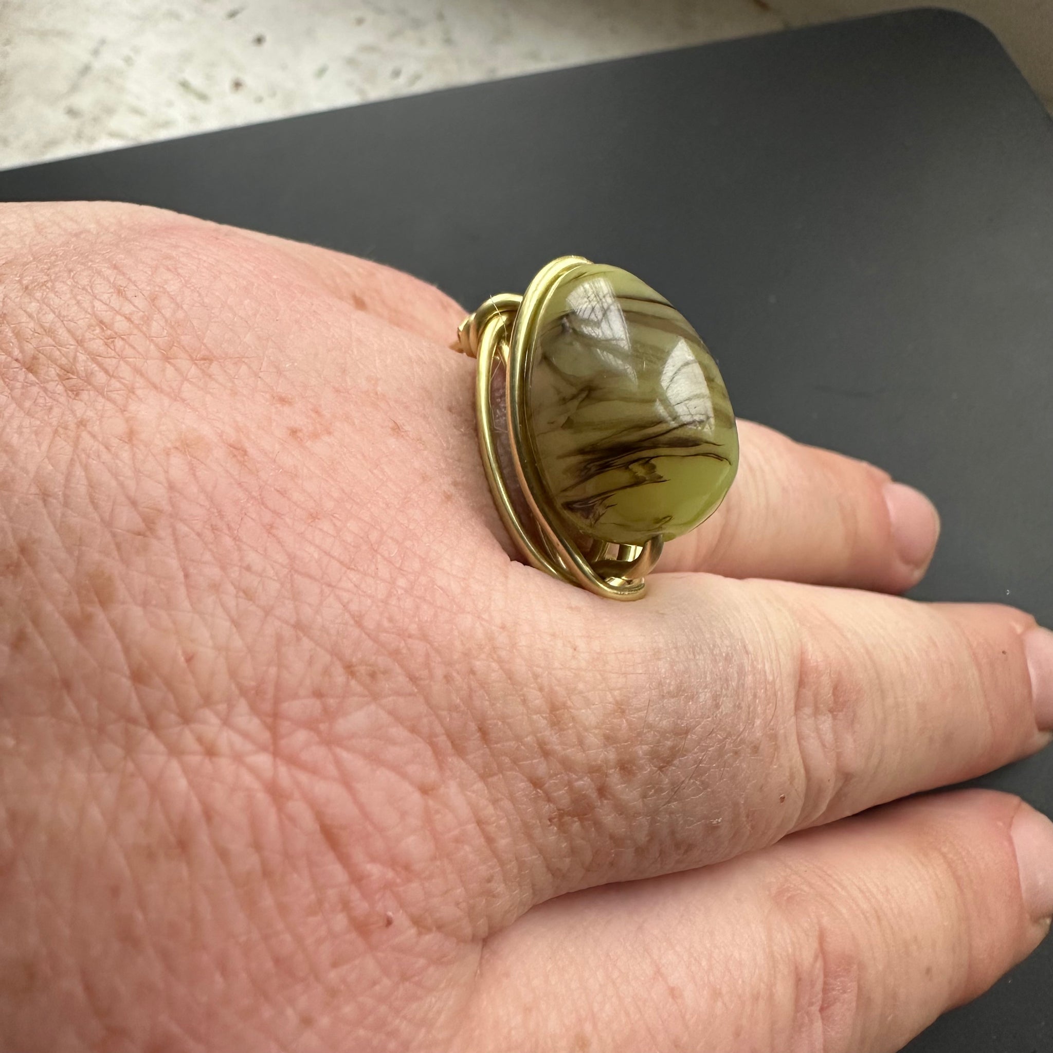 Brass Green Vintage Bead Ring